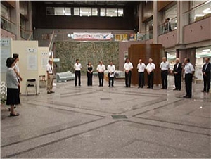 展示会は、北川市長さんの開会のご挨拶で始まりました。市役所にて