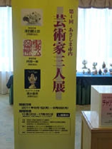 第4回芸術家三人展(昭島市・昭和の森芸術振興会主催)が, 7月19日~22日、昭島市役所ロビーで、8月1日~8日、ホテルフォレストイン昭和館で行われました。