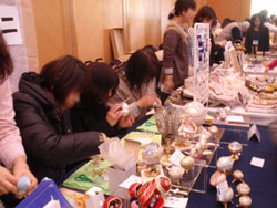 「エッグレジェンド東京」では、4種類の宝石箱とエッグライトを用意し、エッグアートミニ体験講習を行いました。