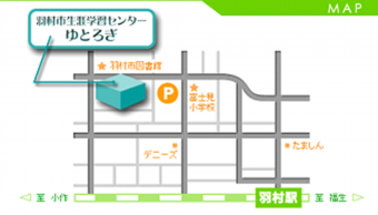 | 場所 | ゆとろぎ(羽村市生涯学習センター) 〒205-0003 東京都羽村市緑ヶ丘1-11-5 青梅線羽村駅東口より徒歩8分 TEL : 042-570-0707 FAX : 042-570-6422 |